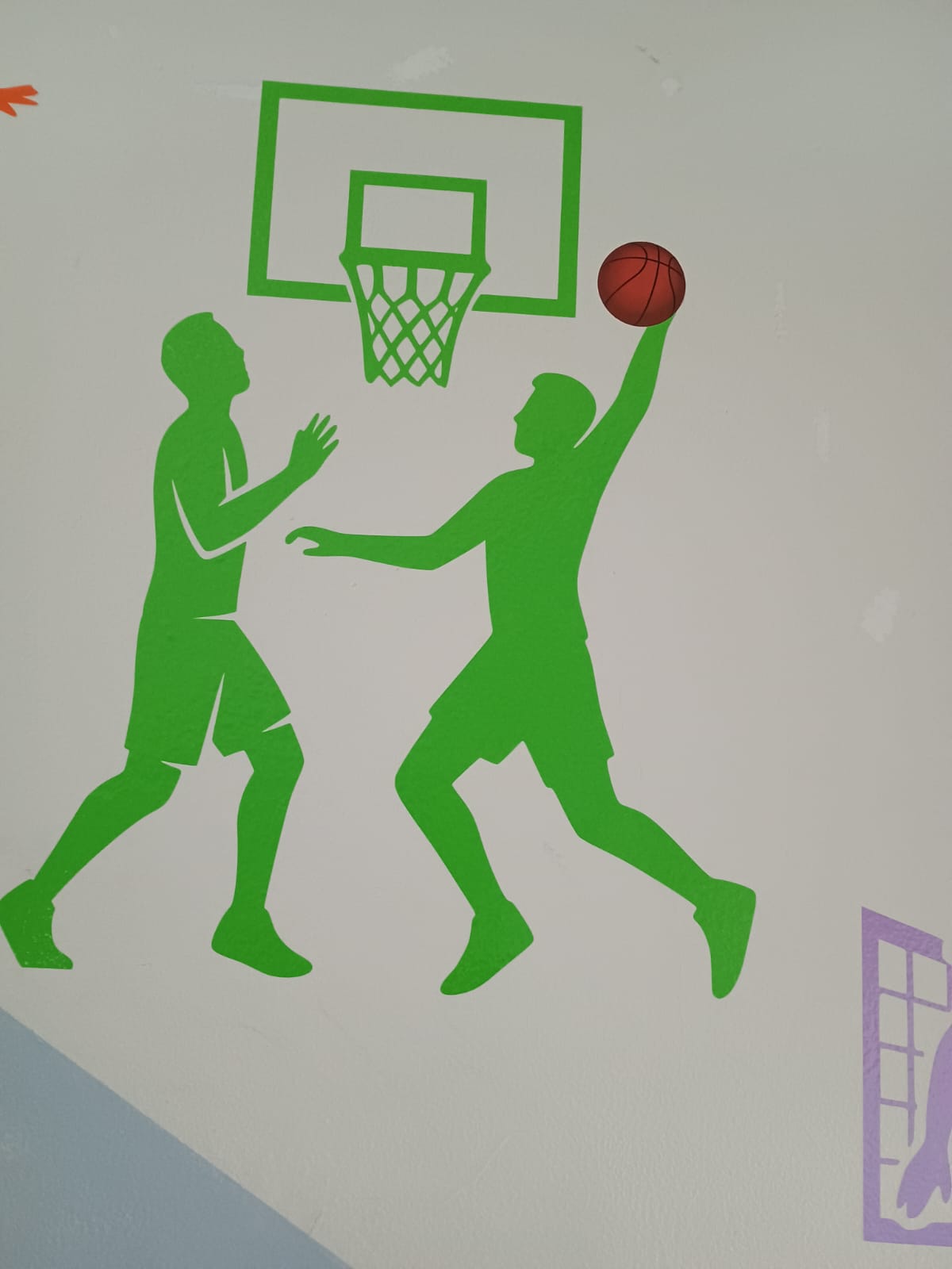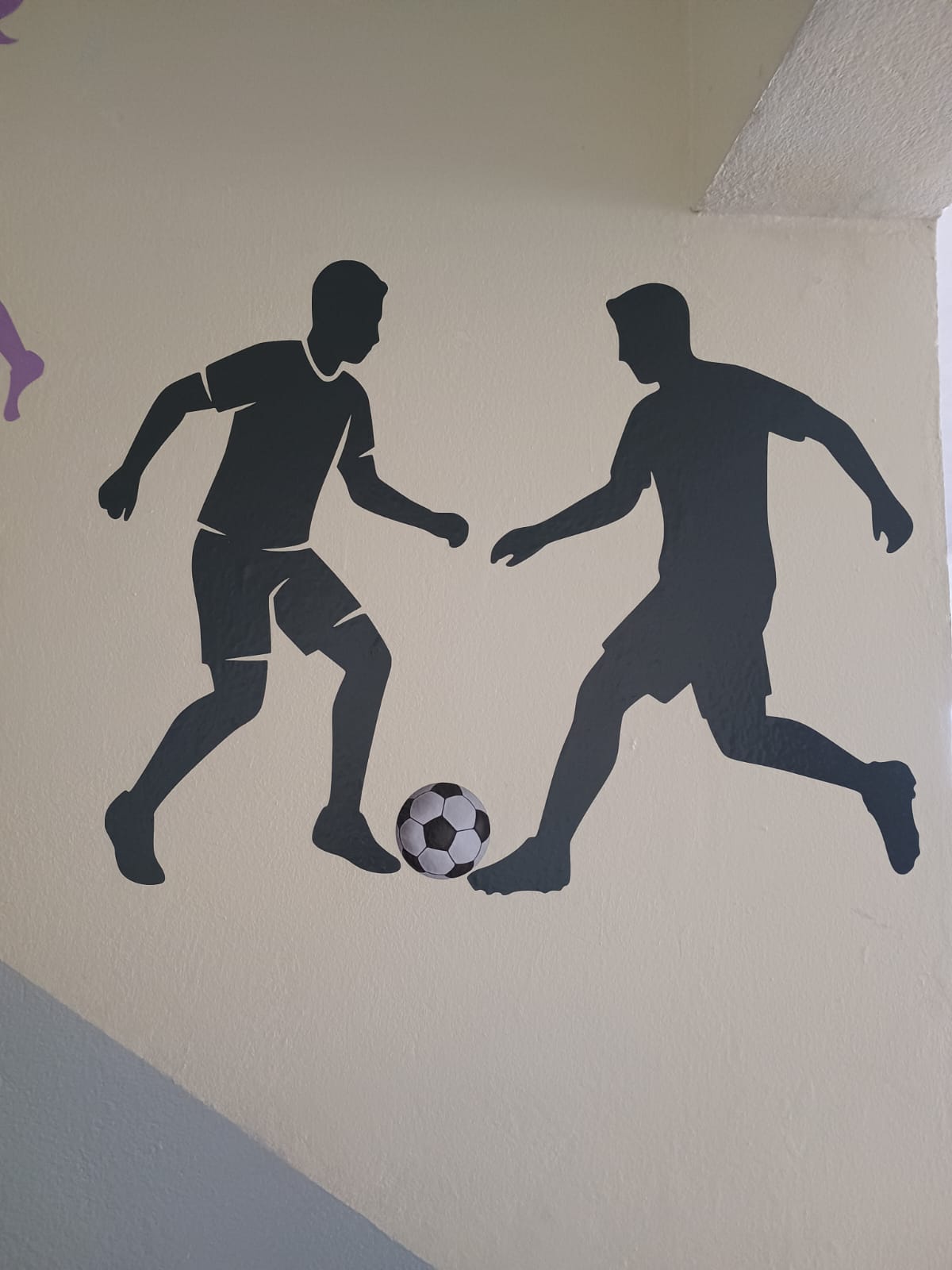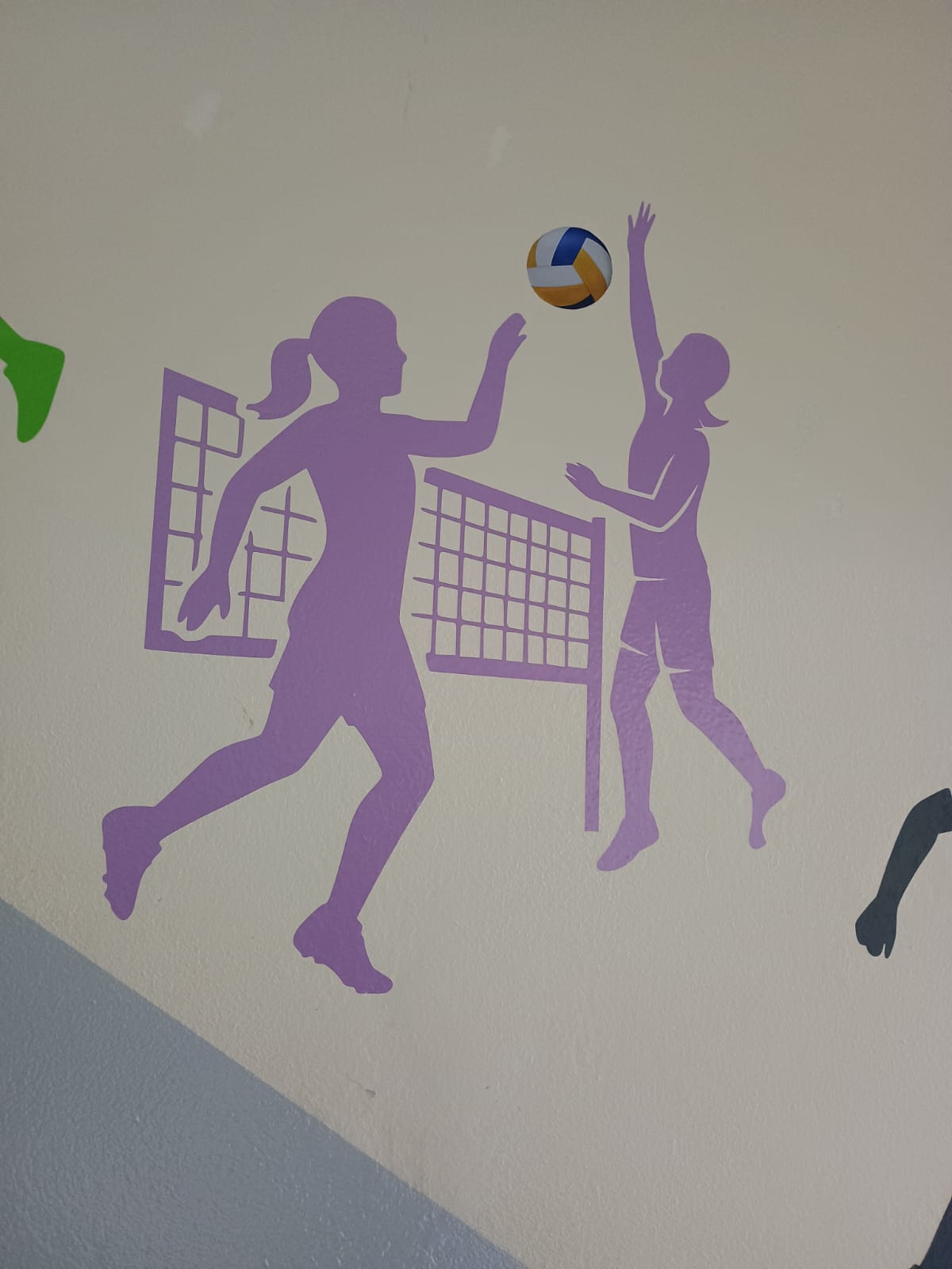 Llenamos de energía y movimiento el espacio común del colegio 🏫 colocando siluetas de los deportes que practican los alumnos: fútbol ⚽, básquet 🏀, vóley 🏐, atletismo 🏃 y más.