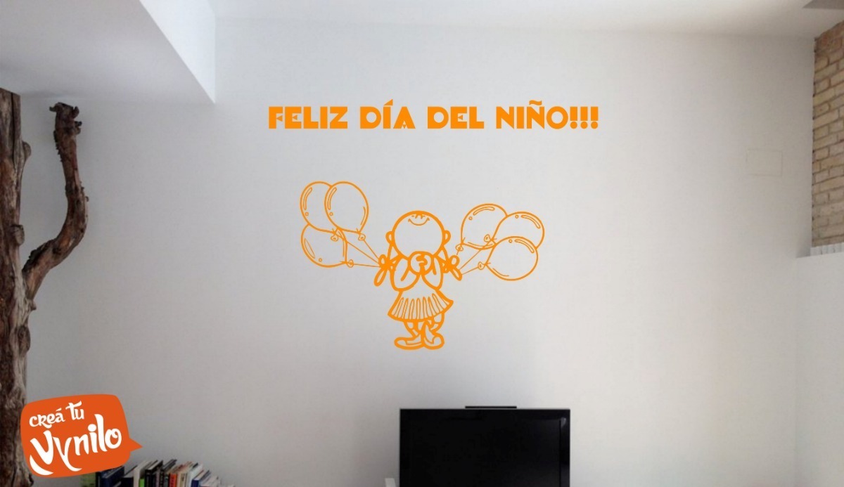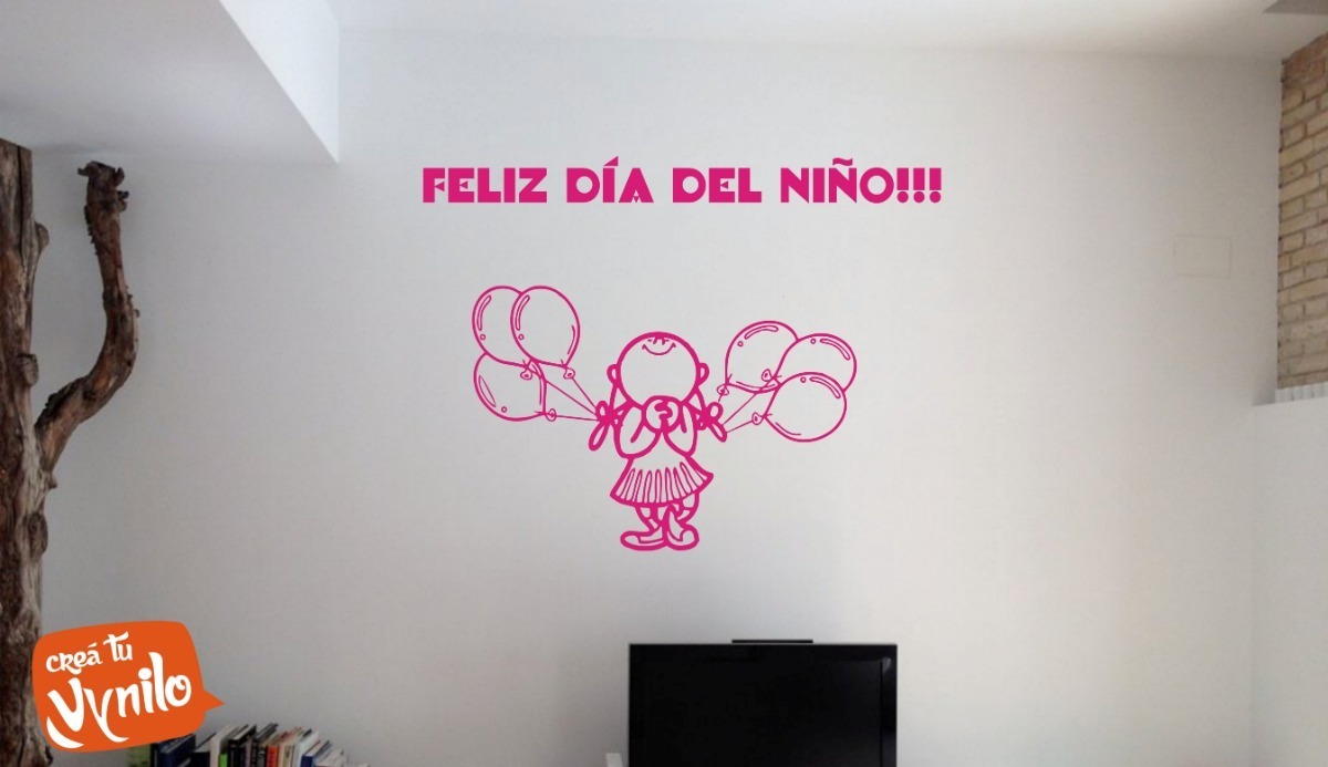 Vinilo Decoracion Día del Niño, Niña con Globos.