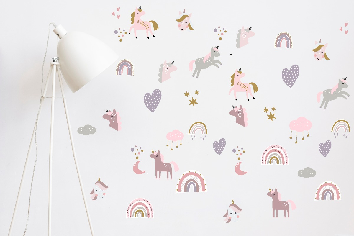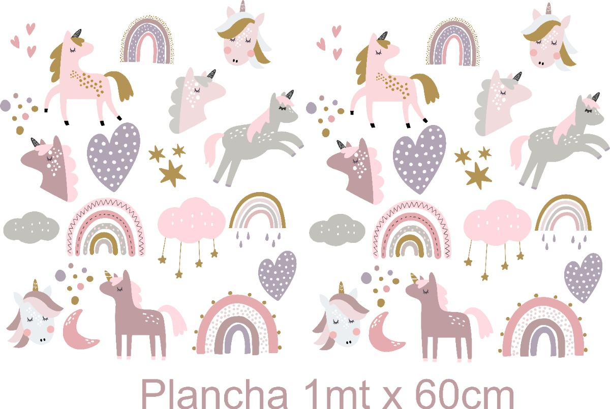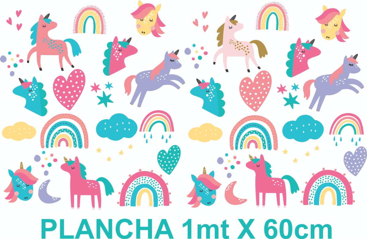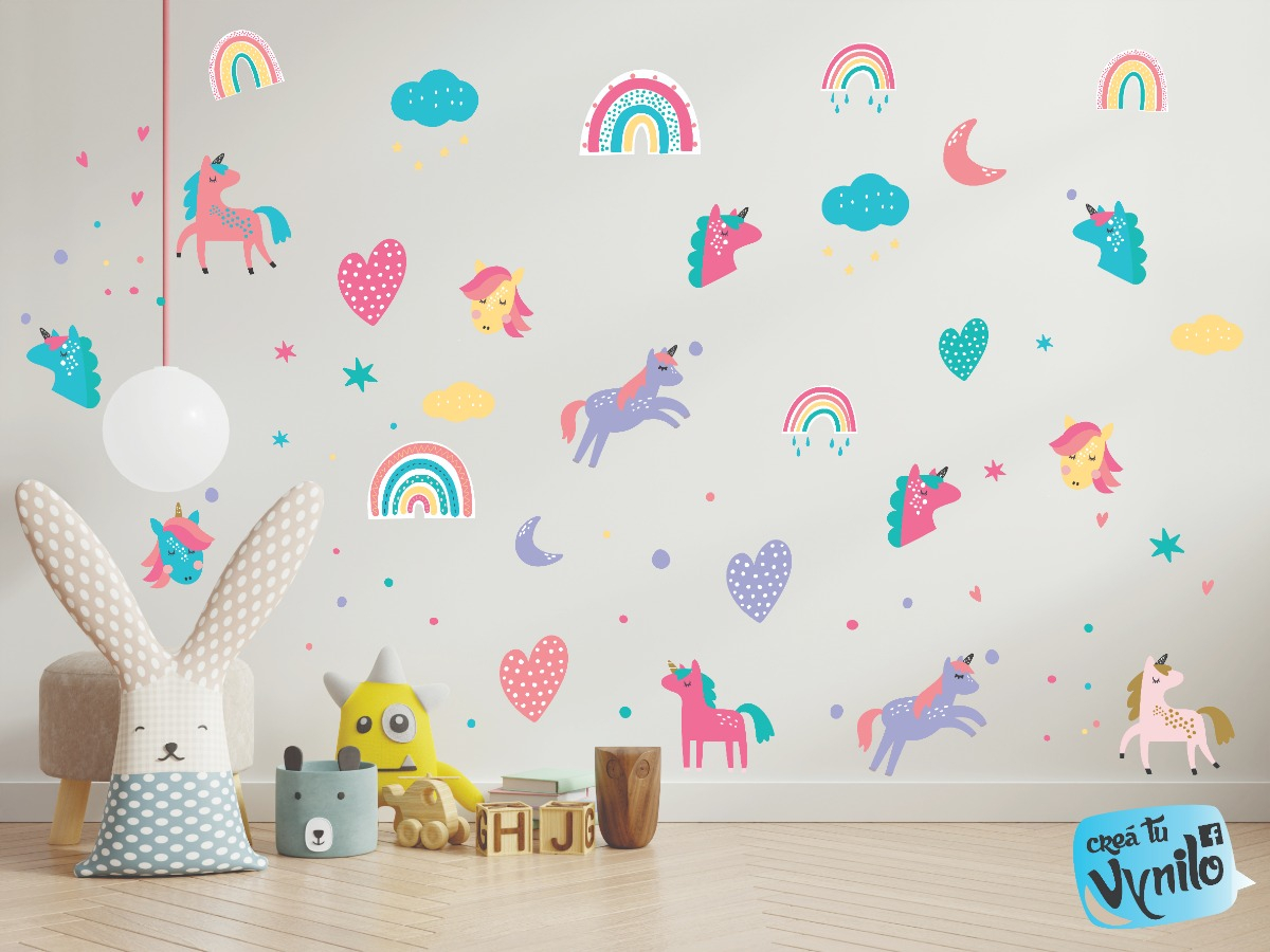 Vinilo infantil unicornios, arcoiris.