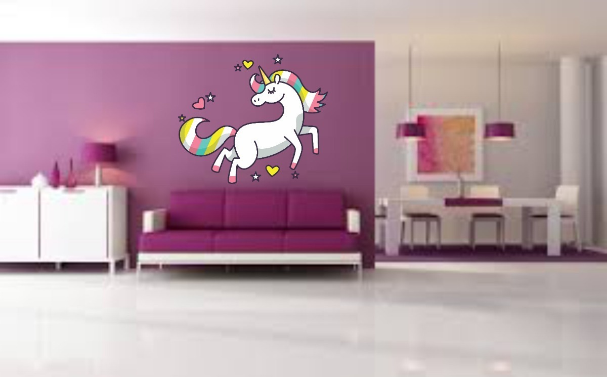 Vinilo Decorativo Infantil Unicornio Blanco Niña 70x60cm