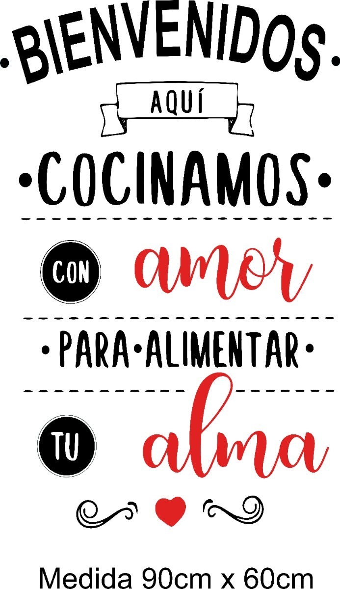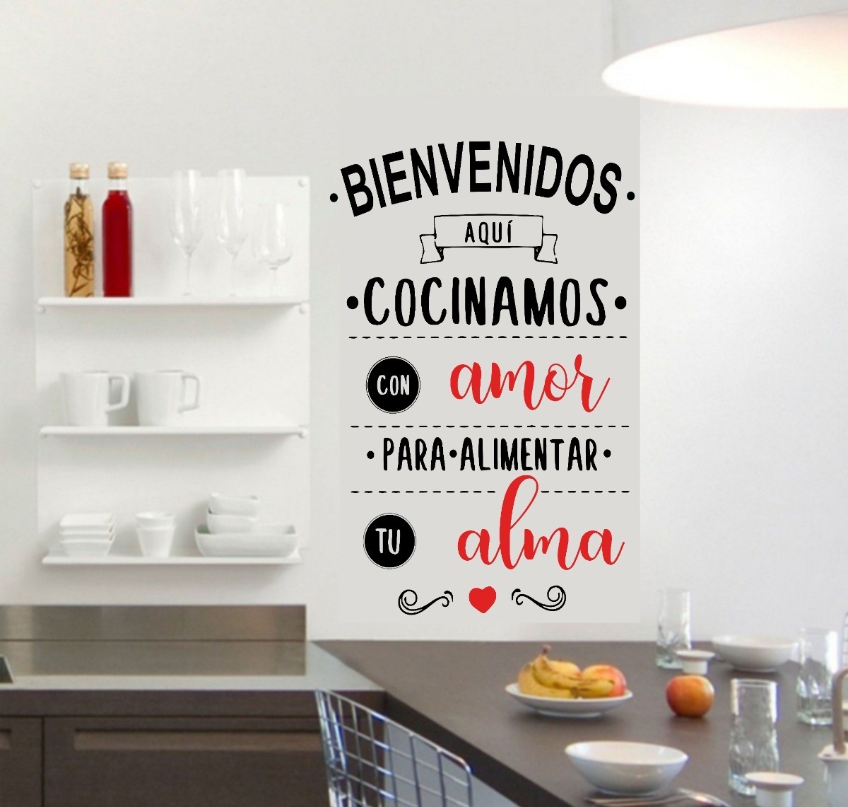 Vinilo Frase Cocina Bienvenidos Aqui 2colores 90cmx60cm