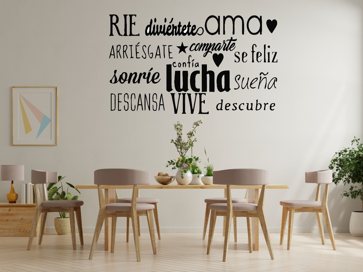 Vinilo Decorativo Frase Ríe, Ama, Sonríe, Lucha, Arriésgate, etc…