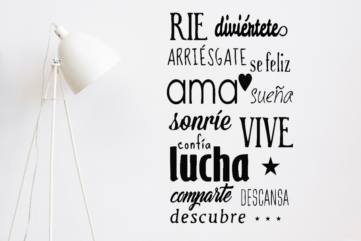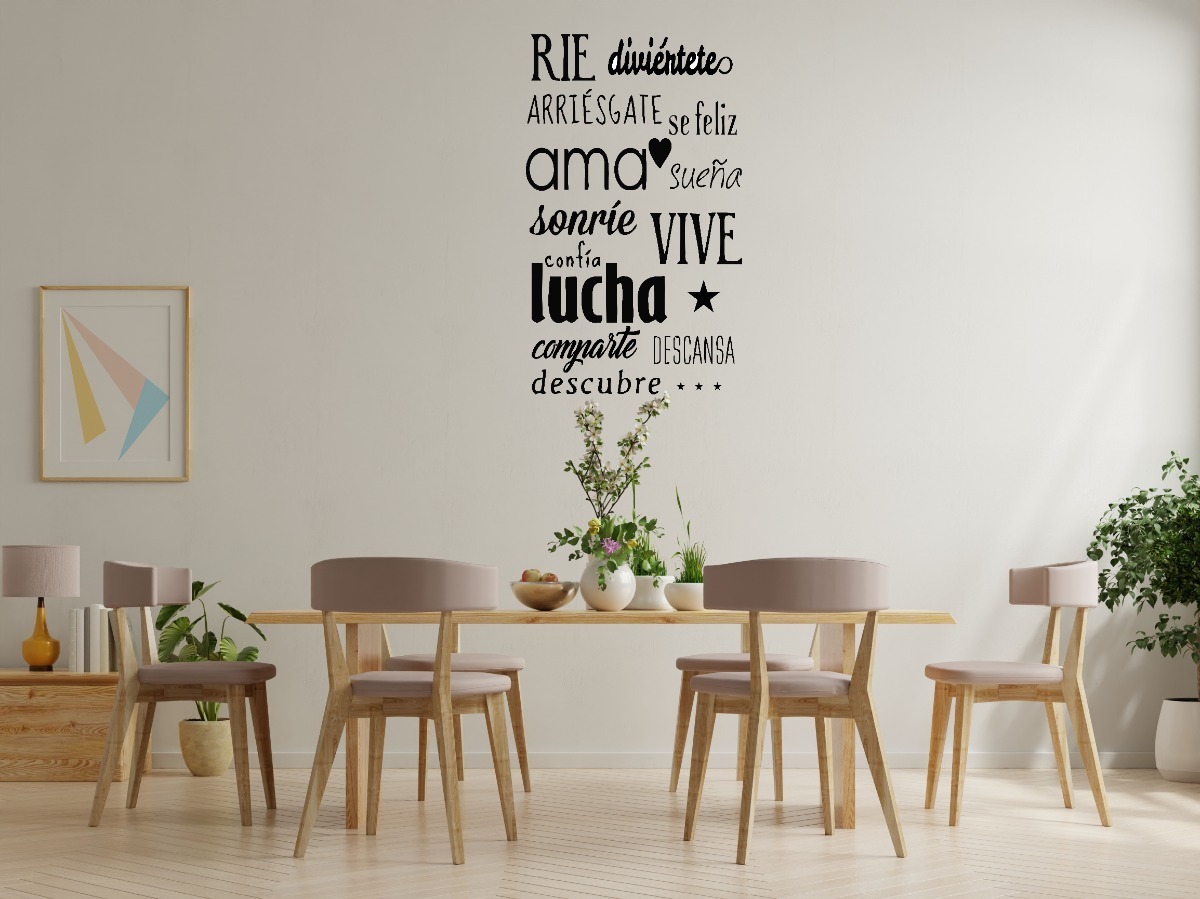 Vinilo Decorativo Frase Ríe, Ama, Sonríe, Lucha, Arriésgate, etc…