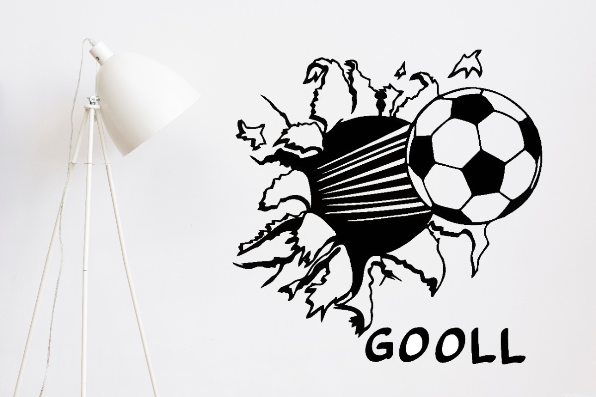 Vinilo Decorativo Gol, Pelota Fútbol Rompe Pared Con Nombre.