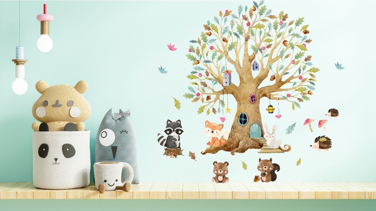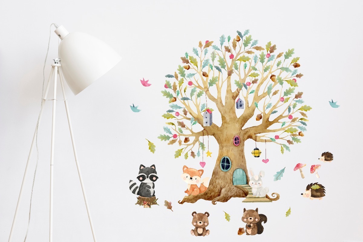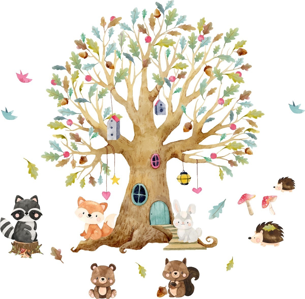 Vinilo Infantil Animales Árbol Acuarela Plancha 1.5mt X 60cm