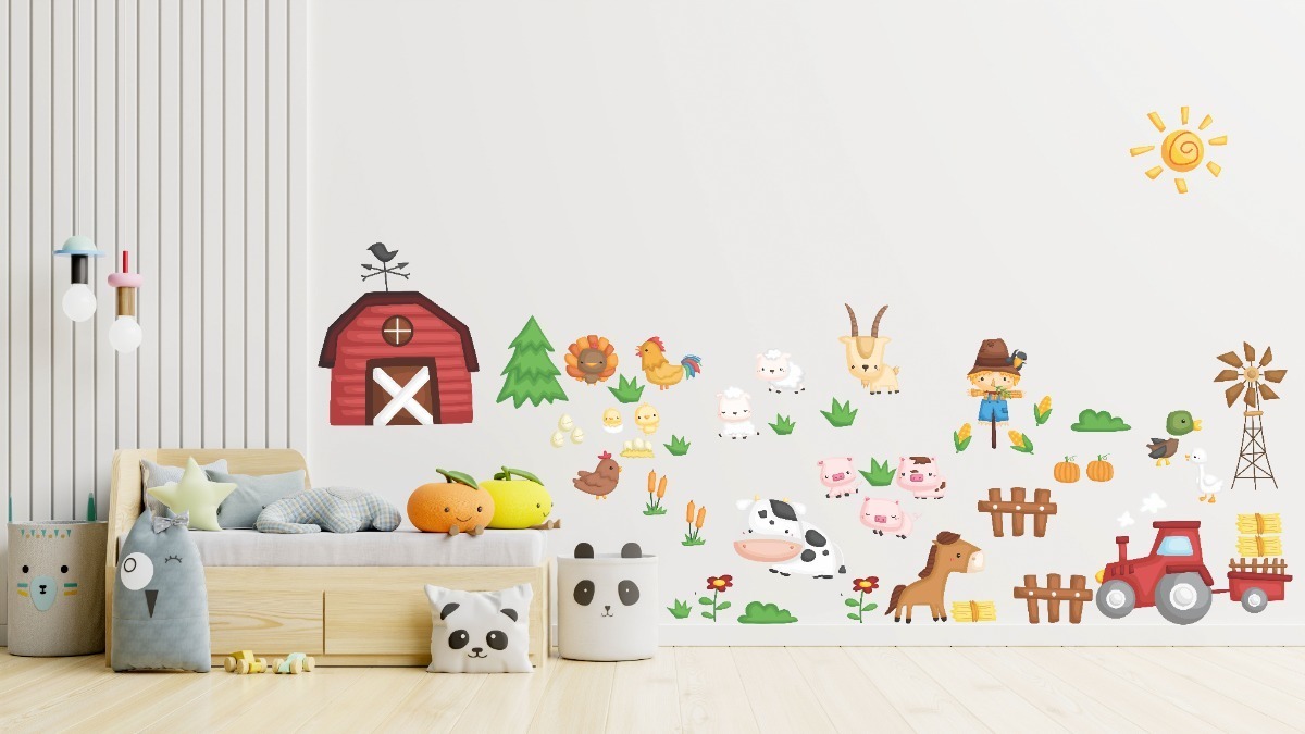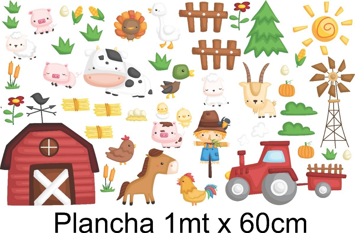Vinilo Impreso Infantil Animales de la granja.