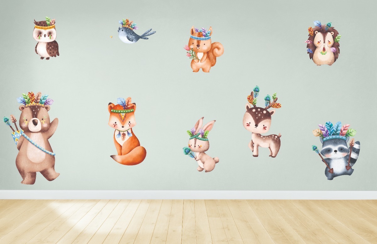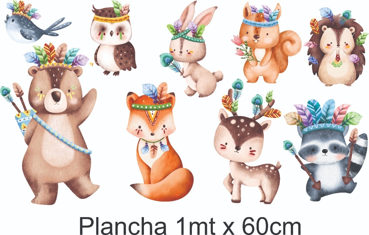 Vinilo Infantil Animales Del Bosque con plumas 1mt X 60cm