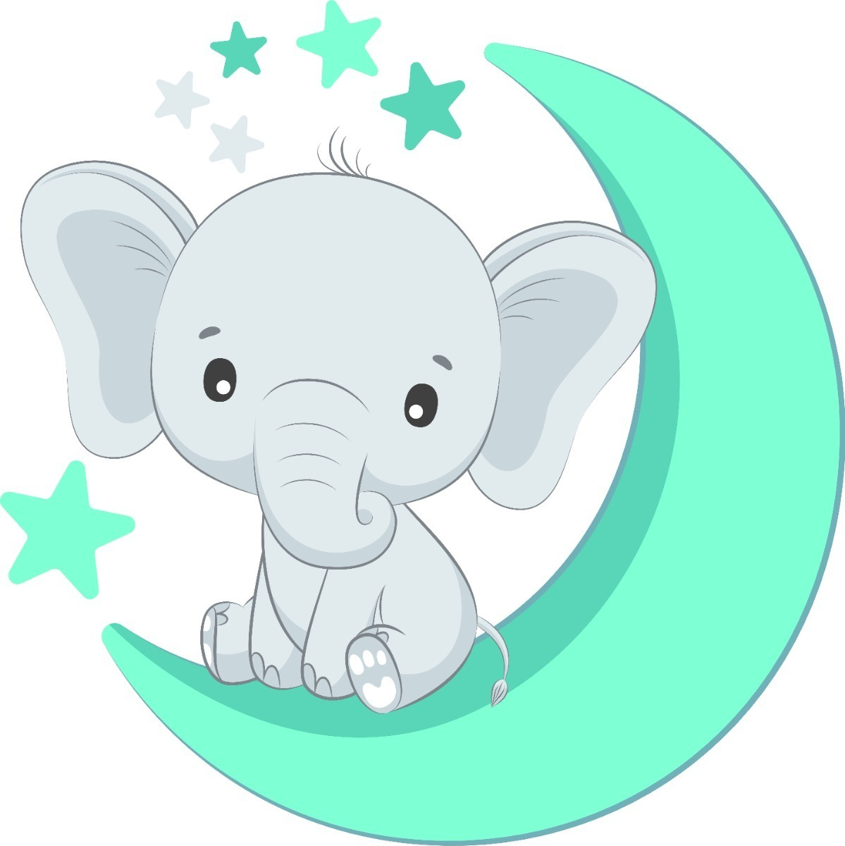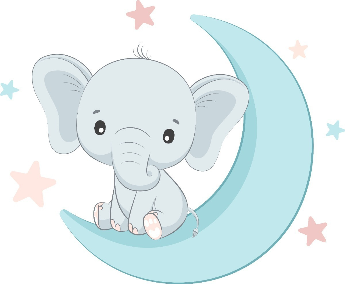 Vinilo Infantil Decorativo Elefante Luna Y Estrellas 60cm