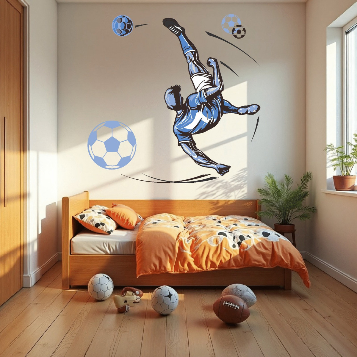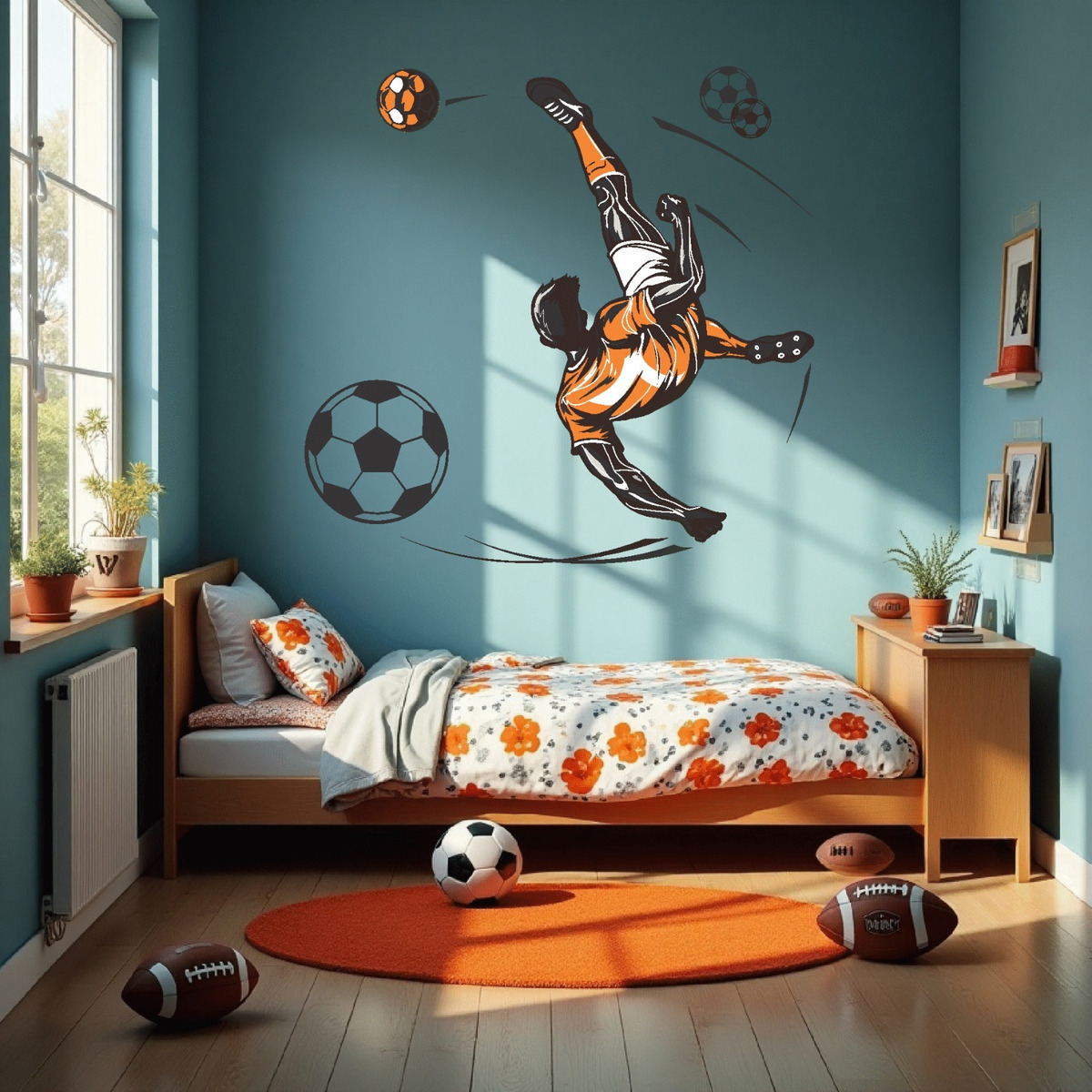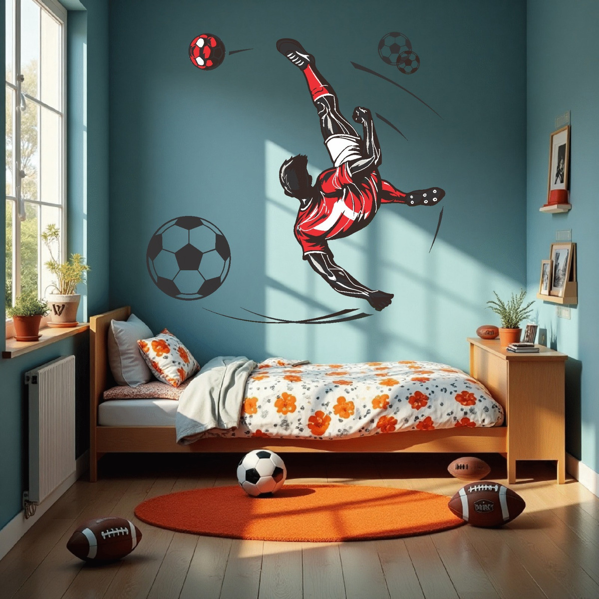 Vinilo Infantil de Fútbol con Pelotas | Decoración Deportiva para Pared Niños