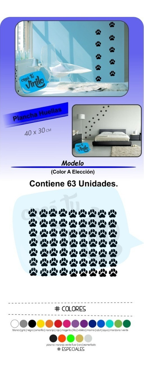 Vinilo Decorativo Infantil Plancha Huellas PACK X2.