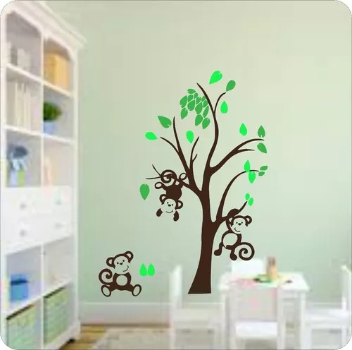 Vinilo Infantil Monitos Arbol Decoracion Pared