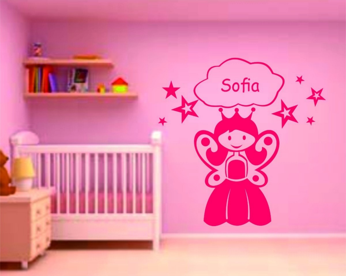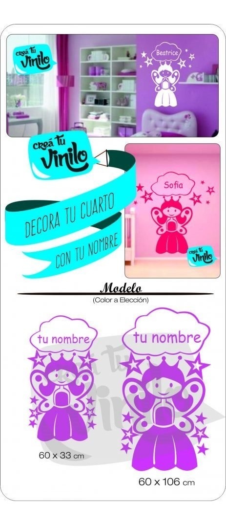 Vinilo Decorativo Hada Con Nombre Chica, Medidas 60cm x 33cm.